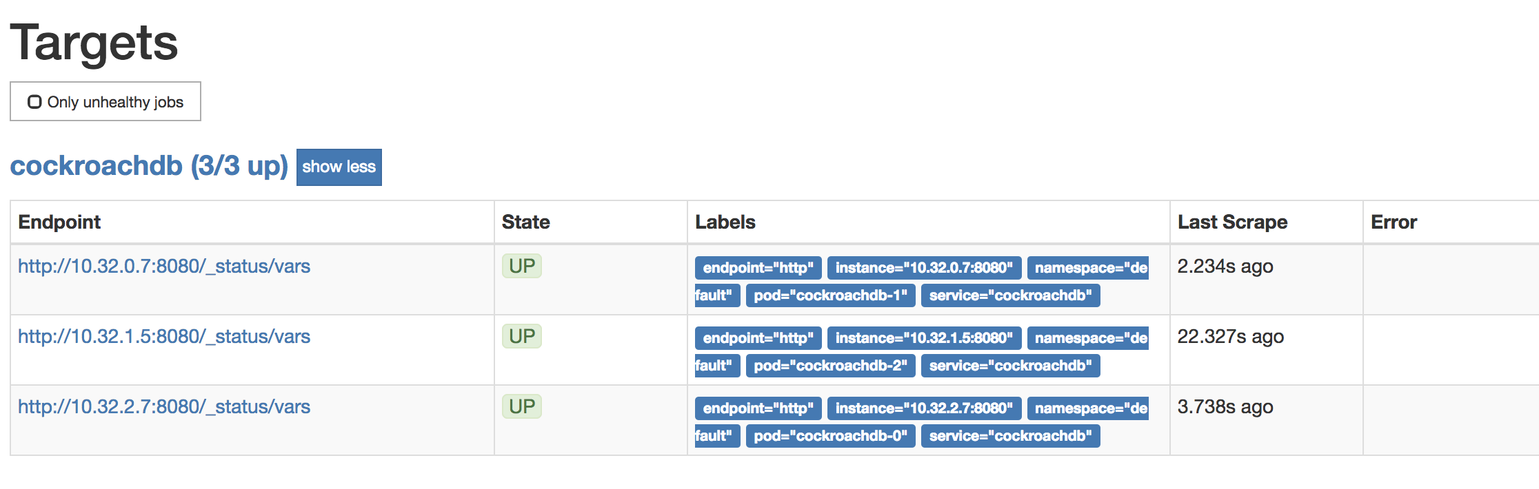 cockroachdb-0 cockroachdb/cockroach:v20.1.17 cockroachdb-1 cockroachdb/cockroach:v20.1.17 cockroachdb-2 cockroachdb/cockroach:v20.1.17 ...